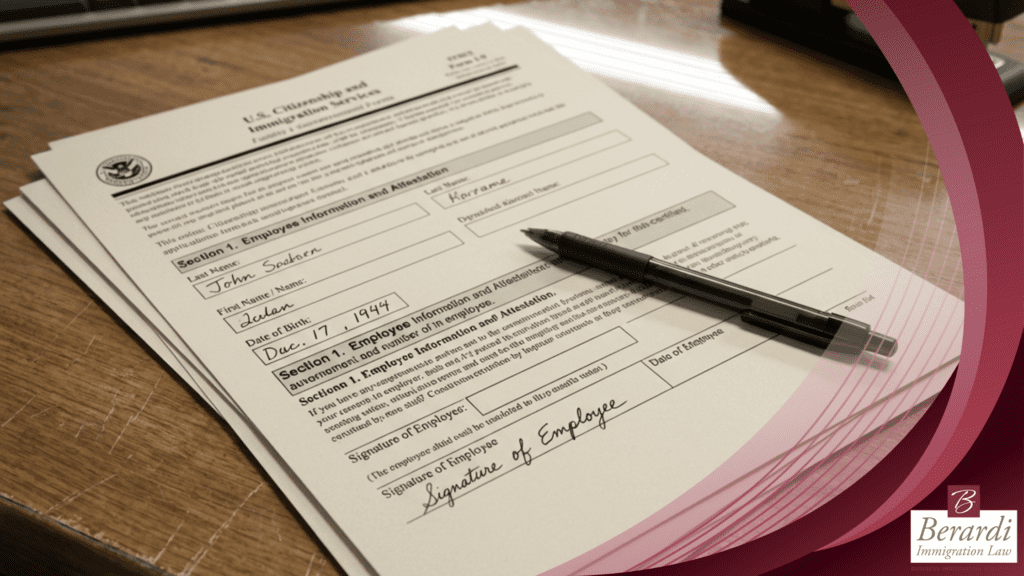 If you’re unsure about your compliance status or want to conduct a privileged audit of your I-9 forms, consulting with an experienced immigration attorney is the smartest investment you can make. Book your consultation with Berardi Immigration Law online today.