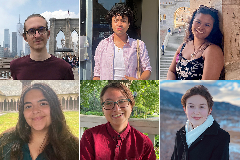 Clockwise from top left: Bard College Gilman Scholarship recipients David Taylor-Demeter ’25, Angel Ramirez ’25, Jennifer Woo ’25, Lisbet Jackson ’25, Yadriel Lagunes ’25, and Lyra Cauley ’25.